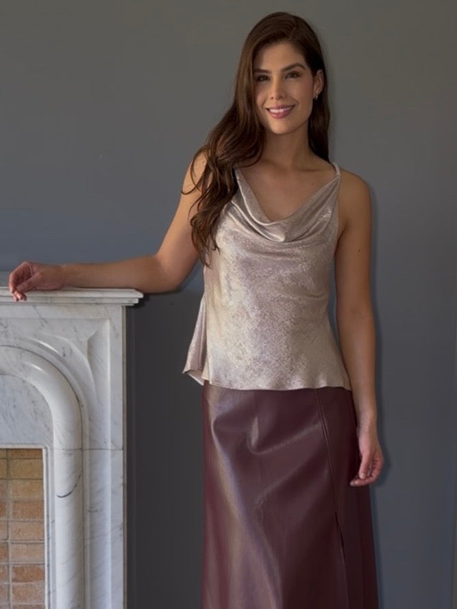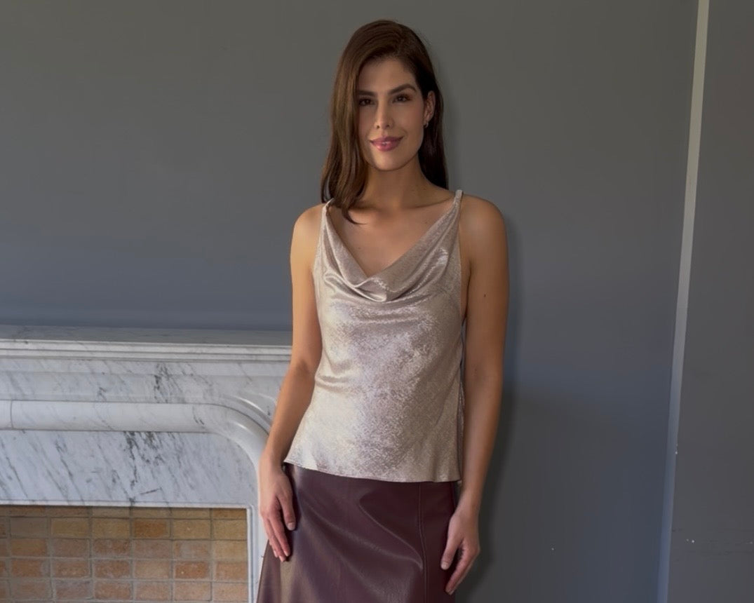 Blusa plateada con diseño sofisticado que combina dos escotes cautivadores: un elegante escote en la espalda y un cómodo escote tipo hamaca al frente. Esta prenda destaca por su brillo plateado que refleja luz y añade luminosidad a cualquier look. Perfecta para ocasiones especiales, cenas o eventos donde desees lucir radiante y con estilo.