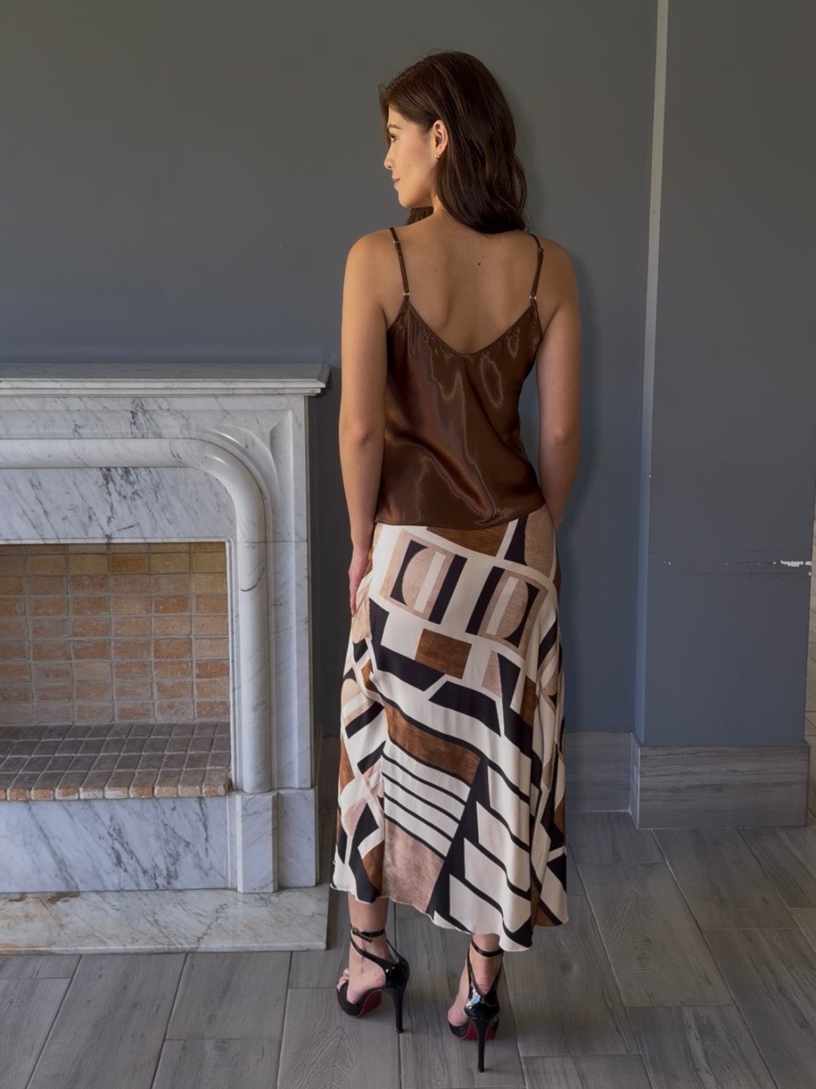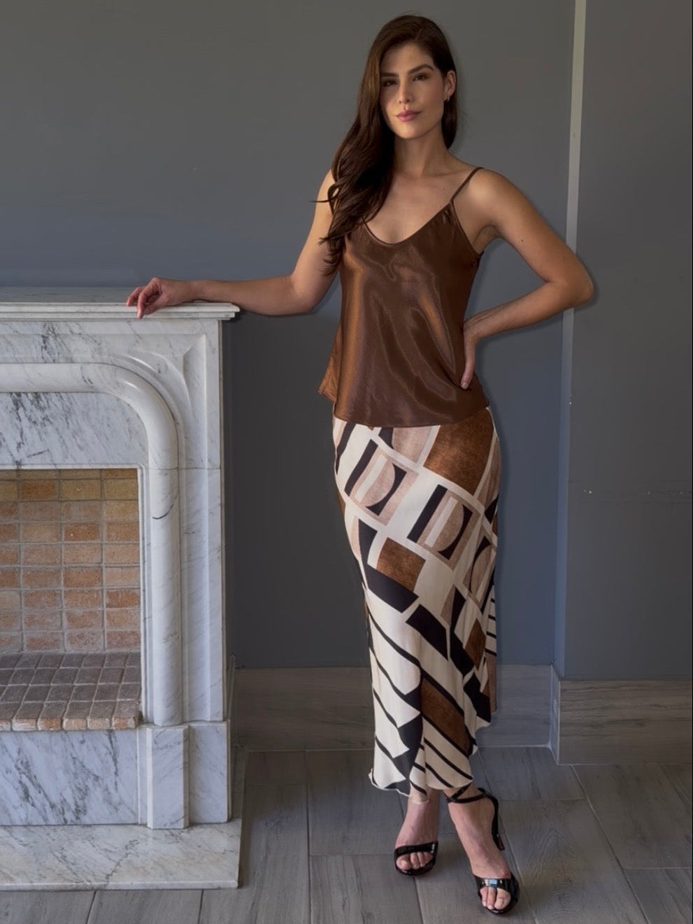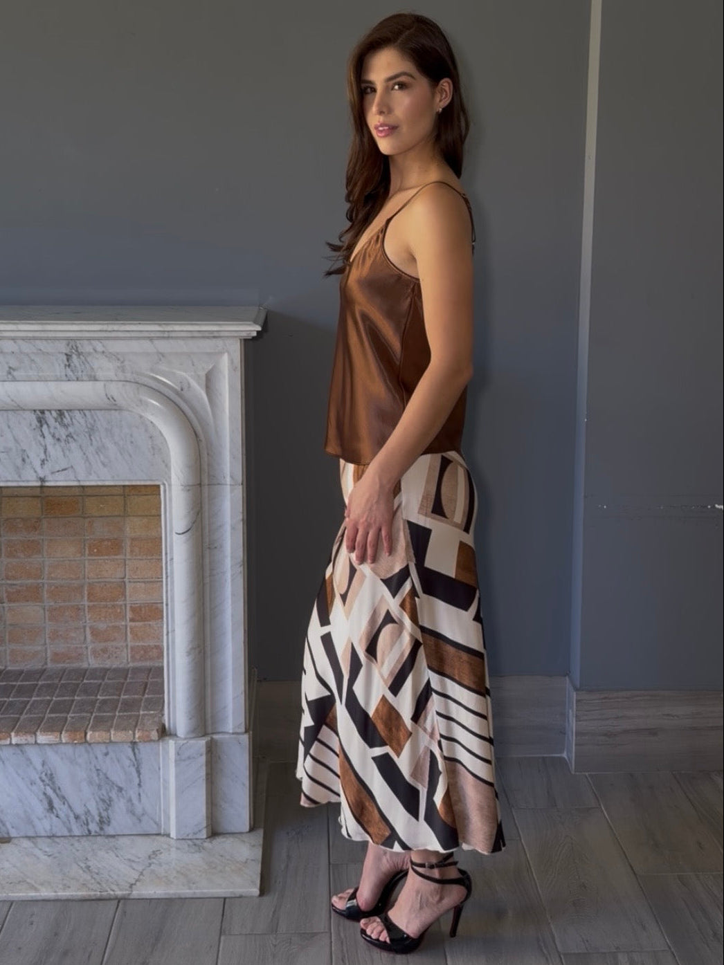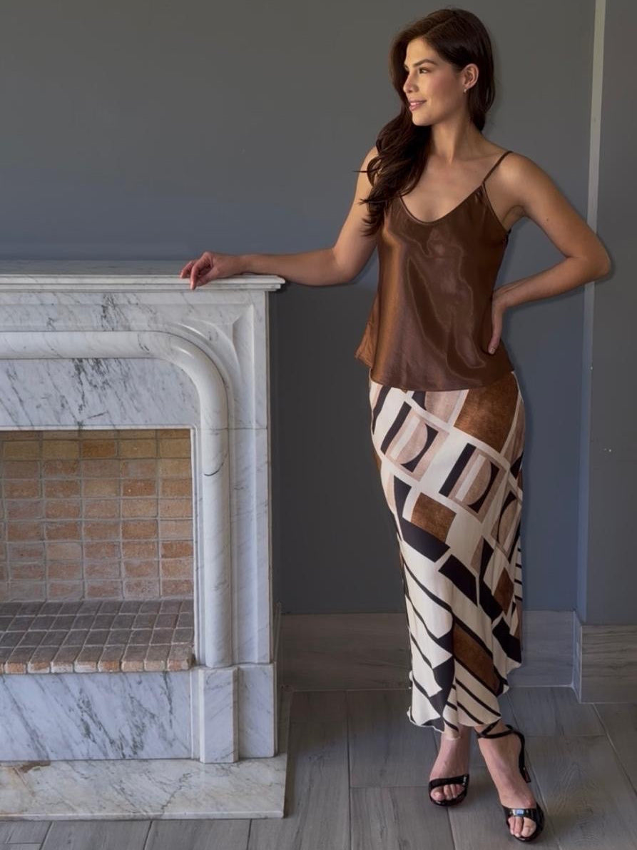 Falda midi italiana con estampado que combina comodidad y estilo. Confeccionada en tela de calidad, presenta un diseño que se adapta a diferentes ocasiones, desde looks casuales hasta más elaborados. Su largo midi proporciona elegancia y movimiento.
