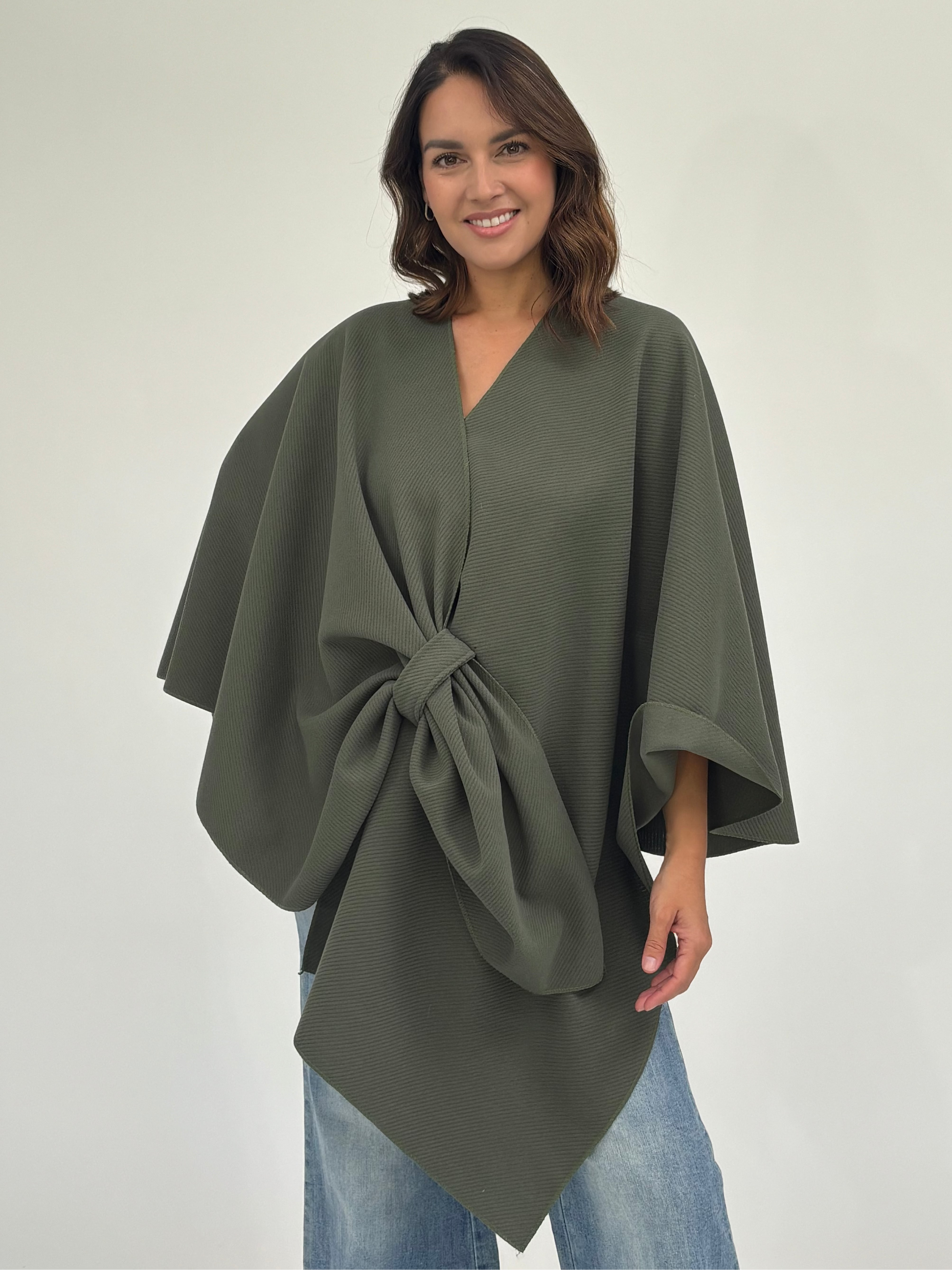 Suéter tipo capa marca italiana que combina elegancia y comodidad. Confeccionado en materiales de calidad. Su corte versátil en verde te ofrece múltiples opciones de estilo, desde looks casuales hasta más sofisticados.